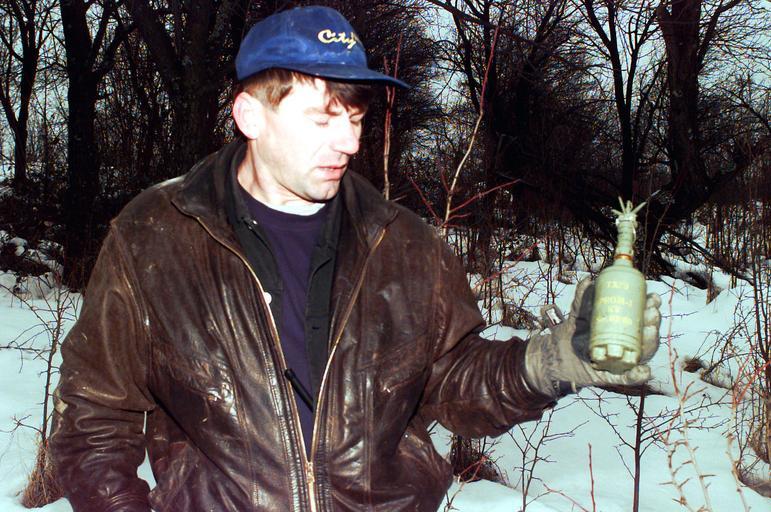 | Keywords: PROM-1 AP-mine.JPEG A Bosnian Muslim engineer holds the armed PROM-1 Bounding ANTI-PERSONNEL MINE in his left hand that he found while Bosnia Muslims were rebuilding their village in Gajeve Bosnia-Herzegovina http //www dodmedia osd mil/Assets/2000/DoD/DD-SD-00-00559 JPEG 1997-01-30 SPC Gerald James Public Domain PD-USGov-Military PD-USGov PROM-1 Landmines in Bosnia and Herzegovina |
