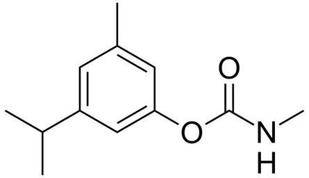 Keywords: Promecarb.svg Chemical structure of promecarb 5-methyl-m-cumenyl methylcarbamate ITC Own 11 43 10 September 2012 UTC Ed Edgar181 Carbamate insecticides