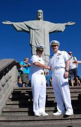| Keywords: Promotion ceremony at Christ the Redeemer statue 140808-N-TN557-179.jpg en Lt j g Juan C Benavides center assigned to the future amphibious assault ship USS America LHA 6 is promoted from Ensign to Lt j g by Capt Robert A Hall Jr America ™s commanding officer in front of the Christ the Redeemer statue during a scheduled port visit America is currently traveling through the U S Southern Command and U S 4th Fleet area of responsibility on her maiden transit America visits the Americas America is the first ship of its class replacing the Tarawa-class of amphibious assault ships As the next generation big-deck amphibious assault ship America is optimized for aviation capable of supporting current and future aircraft such as the MV-22 Osprey and F-35B Joint Strike Fighter The ship is scheduled to be ceremoniously commissioned Oct 11 in San Francisco U S Navy photo by Lt Dawn Stankus/Released 2014-08-08 Lt Dawn Stankus https //www dvidshub net/image/1496087 140808-N-TN557-179 2014-08-11 11 56 RIO DE JANEIRO BR PD-USGov-Military-Navy MV-22B Osprey Crew of USS America LHA-6 Images from DoD uploaded by Fæ |
