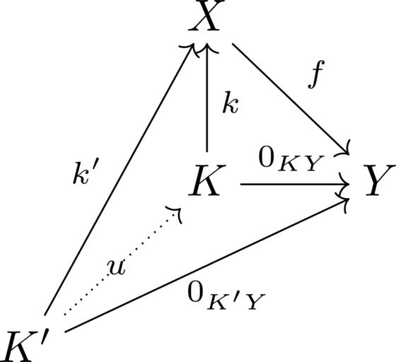 Keywords: Properties of a kernel.svg en This commutative diagram visualises the properties of kernels in category theory 2016-03-13 own Mathmensch other versions cc-zero Commutative diagrams