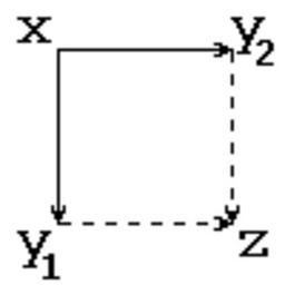 Keywords: PropriedadeDiamante.GIF graph pt Definição da propriedade diamante Linhas sólidas representam o quantificador univeral e linhas tracejadas representam o quantificador existencial Antonino Antonino Livre Term rewriting systems