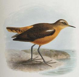 | Keywords: Prosobonia leucoptera.jpg Forster's Short Winged Sandpiper Phegornis Leucopterus now Prosobonia leucoptera Also commonly called White-winged Sandpiper Hand-coloured lithograph by J G Keulemans from H Seebilm's Geographical distribution of the Charadriidae 1887 “1888 http //extinct-website com/extinct-website/product_info php cPath 22_32 products_id 397 1887 - 1888 creator John Gerrard Keulemans PD-old-100 Prosobonia leucoptera John Gerrard Keulemans | ||||