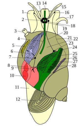 | Keywords: Prosobranchia male.svg Drawing of male Prosobranchia gastropod Kresba předožábrého plže - samec Schéma anatomie předožábrého plže noha pleurální ganglion dýchací otvor horní komisur žábra ganglion srdeční předsíň viscerální ganglion srdeční komora noha víčko operkulum mozek ústa tykadlo oko tykadlo sluchový váček pedální ganglion dolní komisura plášťová dutina parietální ganglion řiť hepatopankreas chámovod konečník ledvina 2009-10-21 04 28 UTC Prosobranchia male png Prosobranchia male png by Michal Maňas Derivative work Mircalla22 <span class signature-talk >talk</span> Prosobranchia male png 50 vectorize image Mircalla22 Prosobranchia male png Drawing of male Prosobranchia gastropod Czech kresba předožábrého plže - samec original drawing is from Brehms Tierleben coloured by User snek01 </nowiki> Uploaded with derivativeFX Gastropoda terminology SVG anatomy SVG Gastropoda |