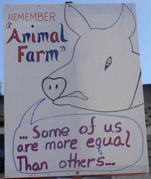 | Keywords: Protest 0086.JPG Belizian protests 21st January 2005 ;See also 2005 Belizian Protests Belizian Protest against tax increases near the National Assembly building Belmopan Belize 21 January 2005 Prejudice Banners and signs at demonstrations and protests in English Pigs in art |