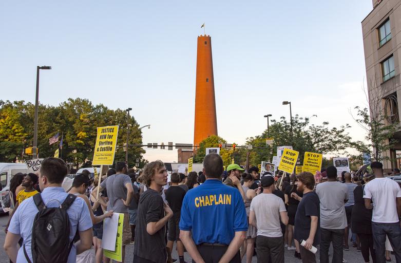 Keywords: protest baltimore police maryland area barricade block bpd city event enforcement emergency protect law law enforcement signs speakout march
