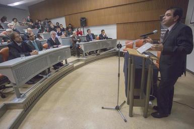 Keywords: indoor La Facultad de Ingeniería y Ciencias y la Escuela de Negocios, realizaron la presentación del proyecto CONICYT Anillo “Optimización a gran escala e incertidumbre: desafíos en planificación minera estratégica, un enfoque interdisciplinario” que agrupa a investigadores de distintas disciplinas y universidades: Universidad Adolfo Ibáñez, Universidad de Chile, Universidad Católica y Universidad Católica del Norte en torno al tema de la planificación minera estratégica. En el la oportunidad Manola Sánchez, decana Escuela de Negocios; y Alejandro Jadresic, decano Facultad de Ingeniería y Ciencias dieron la bienvenida a la ceremonia, en que destacaron los desafíos que supone este nuevo centro. Intervinieron además el subsecretario de Minería, Ignacio Moreno Fernández; el director Ejecutivo de CONICYT, Christian Nicolai; Joaquín Villarino, presidente Consejo Minero; José Pesce, vicepresidente de Gestión de Recursos mineros y Desarrollo de CODELCO. La presentación del Anillo fue realizada por Marcos Goycoolea, director del Proyecto Anillo "Desafíos en planificación minera estratégica: Un enfoque interdisciplinario". La Facultad de Ingeniería y Ciencias y la Escuela de Negocios, realizaron la presentación del proyecto CONICYT Anillo “Optimización a gran escala e incertidumbre: desafíos en planificación minera estratégica, un enfoque interdisciplinario” que agrupa a investigadores de distintas disciplinas y universidades: Universidad Adolfo Ibáñez, Universidad de Chile, Universidad Católica y Universidad Católica del Norte en torno al tema de la planificación minera estratégica. En el la oportunidad Manola Sánchez, decana Escuela de Negocios; y Alejandro Jadresic, decano Facultad de Ingeniería y Ciencias dieron la bienvenida a la ceremonia, en que destacaron los desafíos que supone este nuevo centro. Intervinieron además el subsecretario de Minería, Ignacio Moreno Fernández; el director Ejecutivo de CONICYT, Christian Nicolai; Joaquín Villarino, presidente Consejo Minero; José Pesce, vicepresidente de Gestión de Recursos mineros y Desarrollo de CODELCO. La presentación del Anillo fue realizada por Marcos Goycoolea, director del Proyecto Anillo "Desafíos en planificación minera estratégica: Un enfoque interdisciplinario".