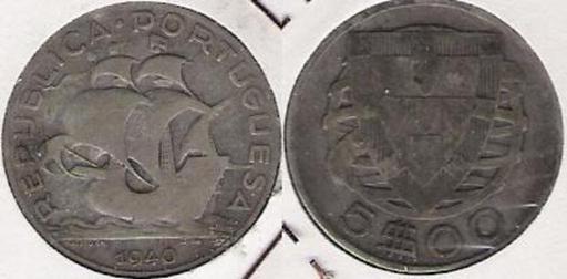 Keywords: PRT021.JPG Portugal 5 escudos 1940 Coins of Portugal 2006-09-17 own assumed B25es