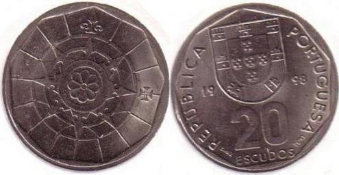Keywords: PRT-20e.jpg es 20 escudos Banco de Portugal coin Trabajo propio photograph Impresa Nacional - Casa da Moeda coin Mvllez photograph 1998 Coins of Portugal