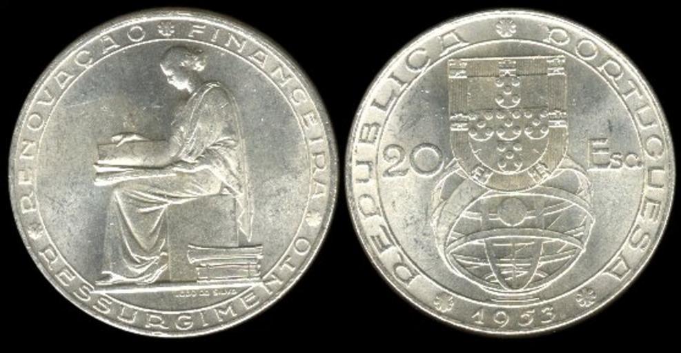 Keywords: PRT-20e1953.jpg es 20 escudos Don's World Coin Gallery http //worldcoingallery com photograph Impresa Nacional - Casa da Moeda coin Don Norris photograph 1953 Commemorative coins of Portugal