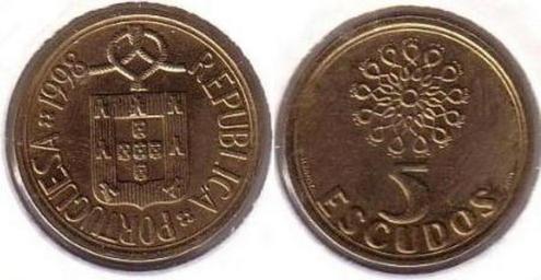 Keywords: PRT-5e2.jpg es 5 escudos Banco de Portugal coin Trabajo propio photograph Mvllez Impresa Nacional - Casa da Moeda coin Mvllez photograph Coins of Portugal