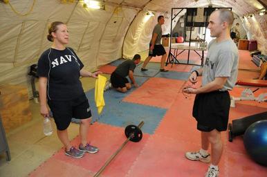 | Keywords: PRT Farah physical fitness 130509-N-LR347-007.jpg en U S Navy Lt j g Laura Cook left and U S Army Spc Nkelo Kurtz right both assigned to the Provincial Reconstruction Team PRT Farah medical department talk before completing post-workout stretching on FOB Farah May 9 Soldiers and sailors assigned to PRT Farah train regularly to maintain high standards of physical fitness enhance mission readiness and improve quality of life PRT Farah's mission is to train advise and assist Afghan government leaders at the municipal district and provincial levels in Farah province Afghanistan Their civil military team is comprised of members of the U S Navy U S Army the U S Department of State and the U S Agency for International Development USAID U S Navy photo by Lt j g Matthew Stroup/released 2013-05-09 Lt j g Matthew Stroup https //www dvidshub net/image/928444 130509-N-LR347-007 2013-05-10 04 45 FORWARD OPERATING BASE FARAH AF PD-USGov-Military-Navy Forward Operating Base Farah United States Agency for International Development Images from DoD uploaded by Fæ |