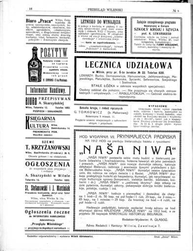 | Keywords: Przeglad Wilenski - 1912 AD - nr 08 - p 16.jpg en page 16 of a newspaper Przegląd Wileński 08 1912 AD Russian empire ru 16-ая ст аница газеты Przegląd Wileński 08 1912 г Российская импе ия be 16-ая ста онка газеты Przegląd Wileński 08 1912 г Расійская імпе ыя newspaper Przegląd Wileński 08 1912 AD Russian empire page 16 editer Ludwik Abramowicz 1879 1939 1912 Przegląd Wileński Nasha Niva Aliaksandr Ulasaŭ PD-old | ||||