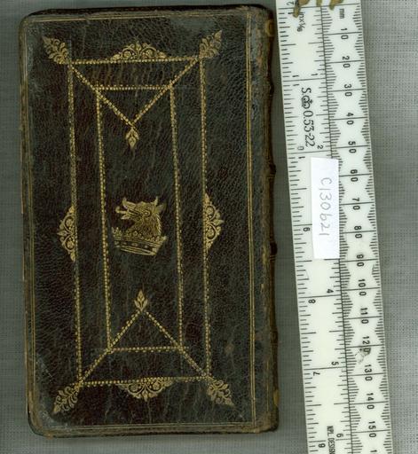 | Keywords: Psalter - Lower cover (C130b21).jpg Style Armorial Panel design; Caption Lower cover; Colour Black; Edge Unspecified exhibition history Decorative Technique Tooled in gold; Cover Material Goatskin includes morocco turkey etc Comb marbled endleaves Blue and white striped endbands Crest on both covers WOLF'S HEAD OUT OF A CORONET object history Text 1697; London; Unspecified object type Cc-zero place of creation Binding England place of discovery To research armorials see British Armorial Bindings Database sponsored jointly by the Bibliographical Society and the University of Toronto http //armorial library utoronto ca British Library image http //www bl uk/catalogues/bookbindings/LargeImage aspx RecordId 020-000012432 ImageId ImageId 45821 Copyright BL Psalter Uploaded with GWToolset Psalter - Lower cover C130b21 http //www webarchive org uk/bldatasets/bindings/13519_3 jpg Bookbinding 17th-century bookbinding British Library Bookbindings |