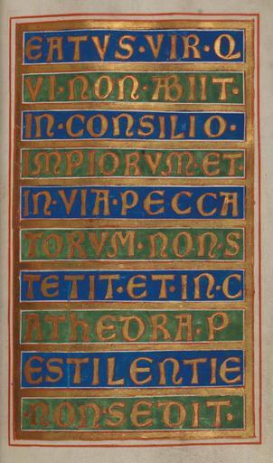 | Keywords: Psalterium Feriatum Cod Don 309 109.jpg Bild aus Psalterium Feriatum Hildesheim bald nach 1235 Württembergische Landesbibliothek Stuttgart Cod Don 309 http //digital wlb-stuttgart de/purl/bsz35289279X after 1235 anonymous PD-old-100 Psalterium Feriatum Cod Don 309 |