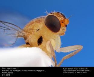 Public domain image. Univ. of Texas at Austin bug insect fly flies diptera compoundeye focusstack chloropidae insectphotography parasitoids pseudogaurax blackwidowparasites |