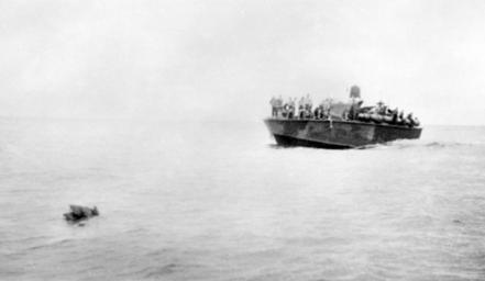 | Keywords: PT boat at Milne Bay 1943.jpg A U S Navy PT boat from the PT base on the southeastern shore of Milne Bay at Kona Kope approaches a makeshift buoy and an oil slick in north eastern Milne Bay which marks the last resting place of A16-245 a 6 Squadron RAAF Lockheed Hudson which was ditched by pilot 415152 Flt Lt Ray Kelly after poor weather delayed the aircraft long enough for it to run out of fuel 60 kilometres from base After watching their plane sink after it floated for five minutes and spending 15 minutes in the water the crew of four were rescued by locals in lakatois outrigger canoes and eventually picked up by the PT Boat and taken to the Asheville class patrol gunboat USS Tulsa PG-22 P03901 010 1943-02-24 Australian armed forces Image copyright Copyright expired - public domain frame cropped PD-Australia PT boats Milne Bay Province Pacific War in February 1943 New Guinea campaign |