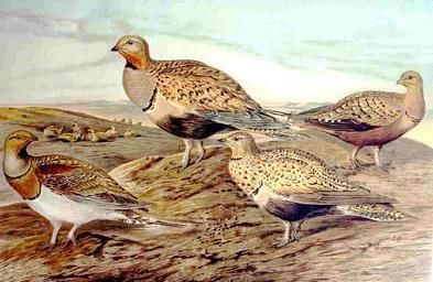 | Keywords: Pterocles sp.jpg Pterocles exustus - Ganga à ventre brun - Chestnut-bellied - SandgrouseWüstenflughuhn<br/> female Pterocles orientalis - Ganga unibande - Black-bellied Sandgrouse - Sandflughuhn<br/> male Pterocles orientalis - Ganga unibande - Black-bellied Sandgrouse - Sandflughuhn<br/> Pterocles alchata - Ganga cata - Pin-tailed Sandgrouse - Spießflughuhn 1905 Creator Johann Friedrich Naumann Image Pterocles sp marked jpg File Pterocles orientalis Naumann jpg NAUMANN PD-old-100 Pterocles exustus Pterocles orientalis Pterocles alchata |