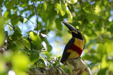 Keywords: pteroglossus bird tree leaves branch nature outside macro close-up