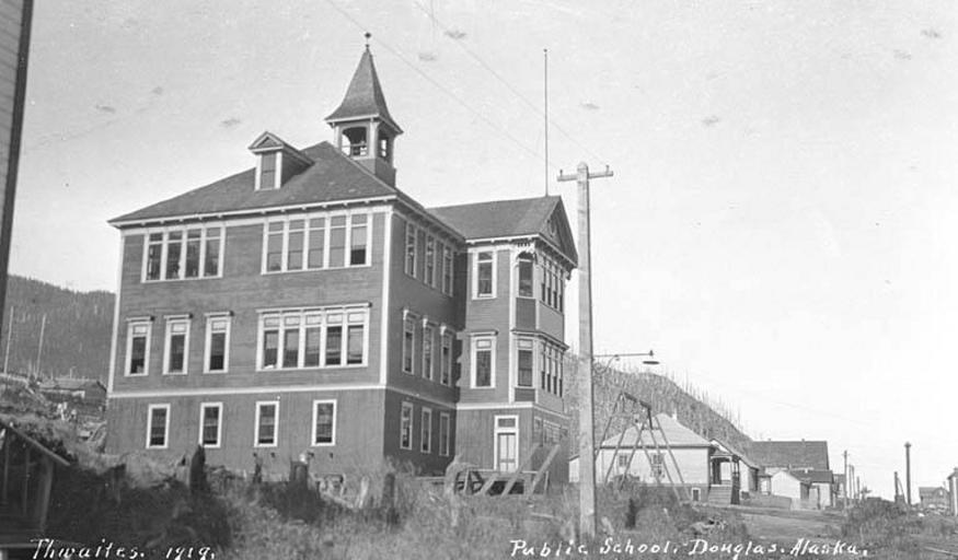 | Keywords: Public school building, Douglas, ca 1912 (THWAITES 190).jpeg check categories 27 October 2016 5 Photograph Creator John E Thwaites Caption on image Public School Douglas Alaska PH Coll 247 444<br/>Douglas lies within the City Borough of Juneau on the northeast coast of Douglas Island The Gastineau Channel is traversed by the Juneau-Douglas Bridge Locally the Douglas area refers to the southern end of the Island population 2 000 The earliest recorded name was Edwardsville perhaps for H H Edwards a miner and resident Douglas originated in 1881 to service mining activities and became an incorporated city in 1902 Also founded in 1881 nearby Treadwell was established 1 2 miles southeast of Douglas It was a company town and incorporated as a city from 1901 through 1912 The Treadwell and Ready Bullion mines on Douglas Island became world-scale mines operating from 1882 to 1917 In 1917 a cave-in and flood closed the Treadwell mine It produced 66 million in gold in its 35 years of operation The City of Douglas was unified with the City of Juneau in 1970 Subjects LCTGM Public schools--Alaska--Juneau; Swings--Alaska--Juneau; Utility poles--Alaska--Juneau; Dwellings--Alaska--Juneau; Douglas Juneau Alaska Subjects LCSH School buildings--Alaska--Juneau depicted place Douglas Alaska ca 1912 Institution University of Washington UWASH-THWAITES-source accession number thwaites 190 PD-old-auto-1923 1940 Information field Order Number THW231 Images from the John E Thwaites Photographs of Alaska Collection to check Public schools Swings Utility poles School buildings Douglas Alaska |