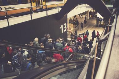 Keywords: public transport people escalator station trains stairs commute commuters rotterdam central station ns