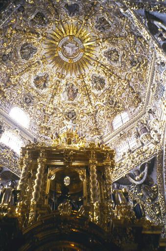 | Keywords: PueAv0037.jpg Cúpula da Capilla del Rosario junto à Iglesia de Santo Domingo Cidade de Puebla Estado de Puebla México Nas paredes da cúpula há cabeças das quais saem longos fios dourados que se entrelaçam para formar a moldura de seis quadros que retratam os mistérios do rosário A cúpula apresenta ainda anjos dançantes e querubins Foto em feb/2004 Altevir Vechia Al Vec 2007-01-25 own assumed Al Vec bg wikipedia Ласа о_Ка денас 1 Churches in Puebla | ||||