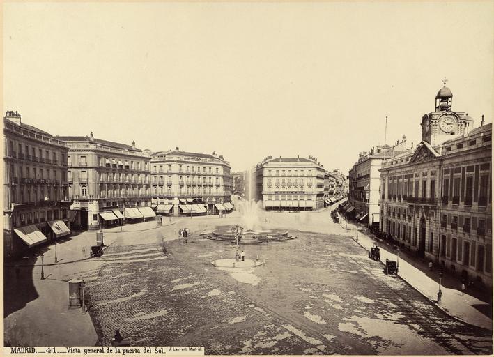 | Keywords: Puerta del Sol (Laurent).jpg es Juan Laurent Madrid vista general de la puerta del Sol ca 1870 papel albúmina http //bibliotecadigitalhispanica bne es/view/action/singleViewer do dvs 1335635056709~205 locale es_ES VIEWER_URL /view/action/singleViewer do DELIVERY_RULE_ID 10 frameId 1 usePid1 true usePid2 true Creator Jean Laurent circa 1870 Puerta del Sol Laurent detalle jpg PD-old-100 Views of Puerta del Sol Puerta del Sol in the 19th century Fountains in Puerta del Sol Juan Laurent landscapes 1870 in Madrid |