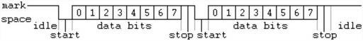 | Keywords: Puerto serie Rs232.png Typical signal levels for a 8N1 RS-232 signal consisting of 1 start bit 8 data bits no parity and 1 stop bit <br/> Edit two bytes shown so the distinction between going idle and going on to the next byte can be made previous image showed going on to the next byte but did not make it clear Font is courior 10 point some formatting marks are hidden as extremely low saturation colors to assist future editors Plugwash 23 43 11 August 2006 UTC Esquema protocolo de transmisión asíncrona Transferred from http //en wikipedia org en wikipedia 2006-12-08 Plugwash at http //en wikipedia org en wikipedia Plugwash Original upload log </nowiki> red completely new version unrelated to first 2006-03-07 15 05 Lio 434×94× 2162 bytes <nowiki>Typical signal levels for a 8N1 RS-232 signal consisting of 1 start bit 8 data bits no parity and 1 stop bit </nowiki> RS-232 Data packet diagrams |