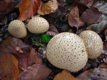 Keywords: puffballs mushrooms golden october autumn leaves forest floor