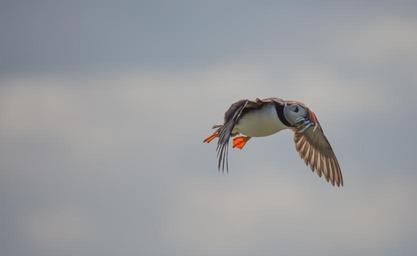 Keywords: puffin flight nature wildlife feathers flying colourful bill ocean