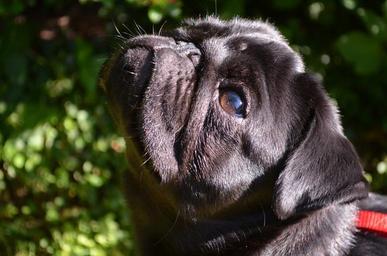 Keywords: pug dog black purebred dog lap dog pet