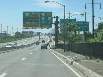 Keywords: Pulaski Skyway south end.jpg The south end of the w Pulaski Skyway Photo taken May 30 2004 by User SPUI 2004-05-30 own SPUI spuiphoto Pulaski Skyway Newark Viaduct Road signs in New Jersey