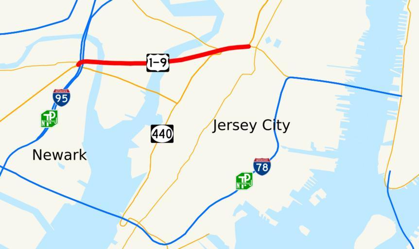 Keywords: Pulaski Skyway.svg This is a map of the Pulaski Skyway made with TIGER/Line and BTS GIS data Road maps of New Jersey Pulaski Skyway US road map legend