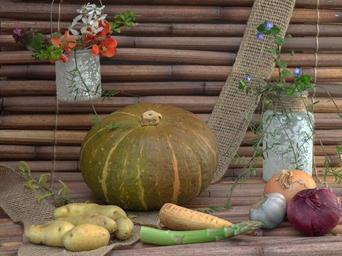 Keywords: pumpkin still life vegetables flowers asparagus
