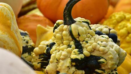 Keywords: pumpkins autumn autumn decoration harvest decorative squashes decoration orange yellow halloween garden color colorful seasonal pumpkin
