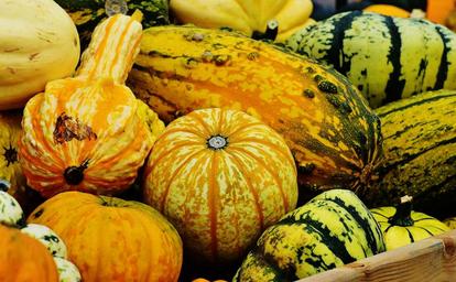 Keywords: pumpkins autumn autumn decoration harvest decorative squashes decoration orange yellow halloween garden color colorful seasonal pumpkin