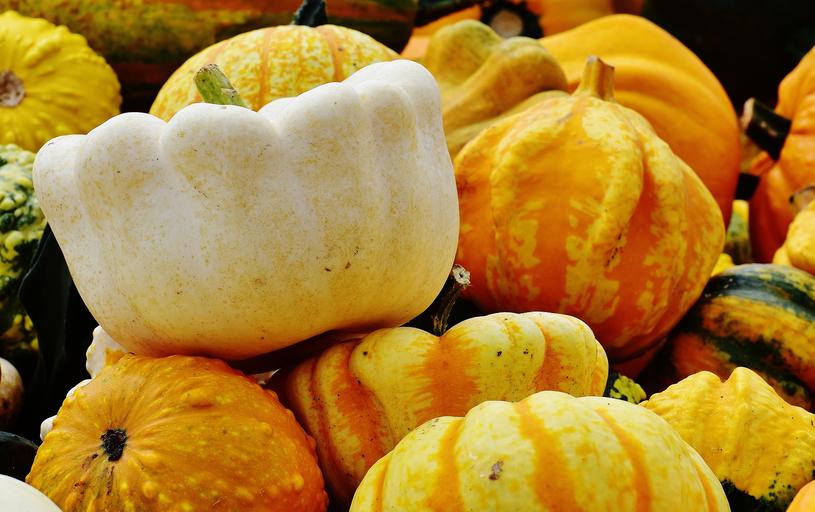 Keywords: pumpkins autumn autumn decoration harvest decorative squashes decoration orange yellow halloween garden color colorful seasonal pumpkin
