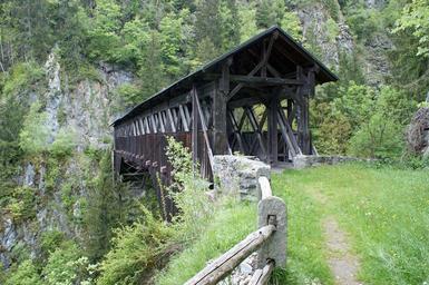 Keywords: Swiss canton mountain wooden Punt Russein bridge Disentis Switzerland