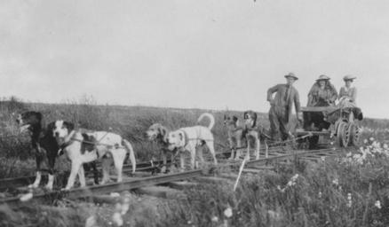 | Keywords: Pup-mobile01.jpg Pup-mobile / View of a dog team pulling a cart with passengers on train tracks near Nome Alaska taken in 1906 / Documented in Frank G Carpenter 1923 Alaska - Our Northern Wonderland S 197 CHAPTER XXV THE DOG DERBY OF ALASKA http //hdl loc gov/loc pnp/ppmsc 01575 1906 author PD-USGov PD-USGov Rail vehicles of the United States Rail transport in Alaska Dog transport 1906 in Alaska Draisines of the United States Dogs of Alaska Animal-powered rail transport | ||||