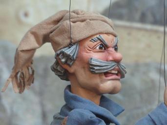 Keywords: puppet man human upset grim evil applied doll puppeteer acting fabric cap