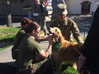 Keywords: presidio pom public_affairs publicaffairs monterey dli dliflc defense_language defenselanguage foreign_language foreignlanguage military language foreign defense community community_relations communityrelations california ca calif dod joint education school ready resilient ready_and_resilient readyandresilient resiliency 229th military_intellegence militaryintellegence intelligence foxtrot f_co fco family_readiness familyreadiness frg family readiness dog dogs mascot lingo humane humane_society humanesociety monterey_county montereycounty spca usa Foxtrot Company, 229th Military Intelligence Bn., brought the SPCA of Monterey County "Hug a Pet" team and a hot dog lunch to Defense Language Institute Foreign Language Center students and staff at the to Presidio of Monterey's Hilltop Track Nov. 9, 2016. Three dogs adopted from the shelter, two certified therapy dogs, and Pfc. Lingo - the school's mascot - spread "puppy love" to raise morale for service members, many of whom live in the barracks where they are not allowed to care for pets while completing military language training at the school. DoD photo by Catherine Caruso, Presidio of Monterey Public Affairs. Foxtrot Company, 229th Military Intelligence Bn., brought the SPCA of Monterey County "Hug a Pet" team and a hot dog lunch to Defense Language Institute Foreign Language Center students and staff at the to Presidio of Monterey's Hilltop Track Nov. 9, 2016. Three dogs adopted from the shelter, two certified therapy dogs, and Pfc. Lingo - the school's mascot - spread "puppy love" to raise morale for service members, many of whom live in the barracks where they are not allowed to care for pets while completing military language training at the school. DoD photo by Catherine Caruso, Presidio of Monterey Public Affairs.