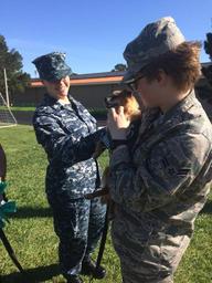 Keywords: presidio pom public_affairs publicaffairs monterey dli dliflc defense_language defenselanguage foreign_language foreignlanguage military language foreign defense community community_relations communityrelations california ca calif dod joint education school ready resilient ready_and_resilient readyandresilient resiliency 229th military_intellegence militaryintellegence intelligence foxtrot f_co fco family_readiness familyreadiness frg family readiness dog dogs mascot lingo humane humane_society humanesociety monterey_county montereycounty spca usa outdoor Foxtrot Company, 229th Military Intelligence Bn., brought the SPCA of Monterey County "Hug a Pet" team and a hot dog lunch to Defense Language Institute Foreign Language Center students and staff at the to Presidio of Monterey's Hilltop Track Nov. 9, 2016. Three dogs adopted from the shelter, two certified therapy dogs, and Pfc. Lingo - the school's mascot - spread "puppy love" to raise morale for service members, many of whom live in the barracks where they are not allowed to care for pets while completing military language training at the school. DoD photo by Catherine Caruso, Presidio of Monterey Public Affairs. Foxtrot Company, 229th Military Intelligence Bn., brought the SPCA of Monterey County "Hug a Pet" team and a hot dog lunch to Defense Language Institute Foreign Language Center students and staff at the to Presidio of Monterey's Hilltop Track Nov. 9, 2016. Three dogs adopted from the shelter, two certified therapy dogs, and Pfc. Lingo - the school's mascot - spread "puppy love" to raise morale for service members, many of whom live in the barracks where they are not allowed to care for pets while completing military language training at the school. DoD photo by Catherine Caruso, Presidio of Monterey Public Affairs.