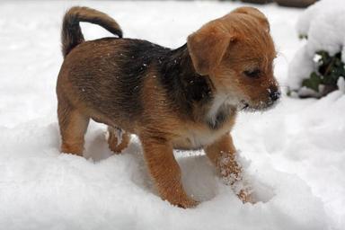 Keywords: puppy terrier snow winter cute dog pet animal canine young adorable