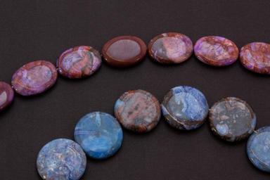Keywords: purpurit sodalite mineral scaffolding silicate purple pink white blue gem stone tumbled smooth crystal structure linsenförmig wheel shape jewellery