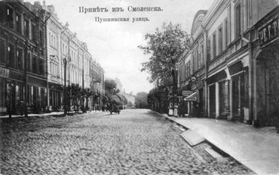 Keywords: Puskinskaya Street 5.jpg en Pushkin Street now - Lenin Street in Smolensk ru Пушкинская улица ныне - улица Ленина в Смоленске О игинальная отк ытка е установлены before 1917 года PD-RusEmpire 20th-century postcards Postcards of Smolensk