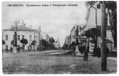 Keywords: Puskinskaya Street 8.jpg en Pushkin Street now - Lenin Street in Smolensk ru Пушкинская улица ныне - улица Ленина в Смоленске О игинальная отк ытка е установлены before 1917 года PD-RusEmpire 20th-century postcards Postcards of Smolensk