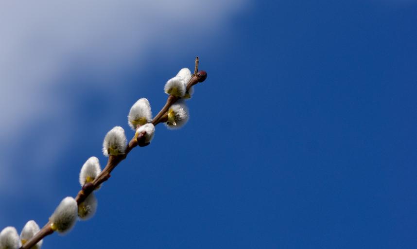 Keywords: pussy willow blue spring sky branches fluffy hairy branch nature bud close harbinger of spring spring awakening