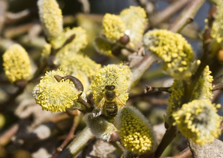 Keywords: pussy willow pasture kitten inflorescence pollen honey bee bee