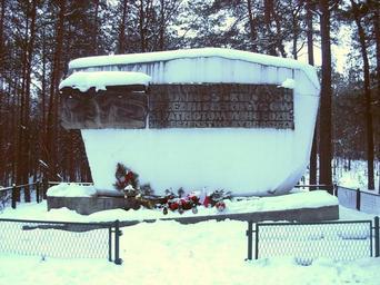 Keywords: Puszcza Bydgoska pomnik zima 01-2013.jpg pl Pomnik martyrologiczny w Puszczy Bydgoskiej opodal ul Dobrzyńskiej na Glinkach w Bydgoszczy own Pit1233 2013-01 Memorials in Bydgoszcz Forest Cc-zero