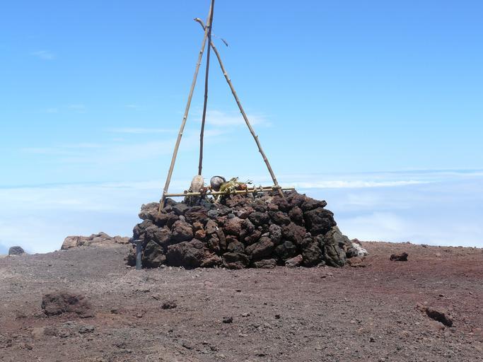 Keywords: Puu o Kukahauula Autel Hawaiien.JPG Autel hawaiien sur le Puʻu o Kukahauʻula sommet du Mauna Kea On peut apercevoir devant l'autel sur la gauche la borne géodésique de l'USGS Pris par moi même 2007-06-16 Moi même Mauna Kea