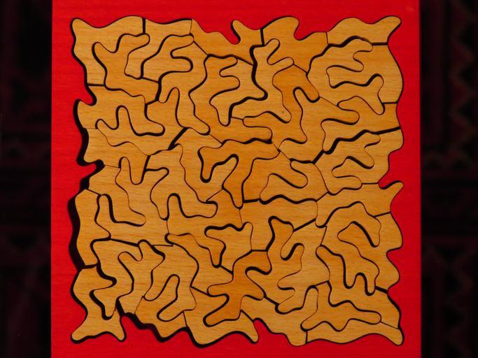 Keywords: puzzle share irregular tricky wood brown red patience individual